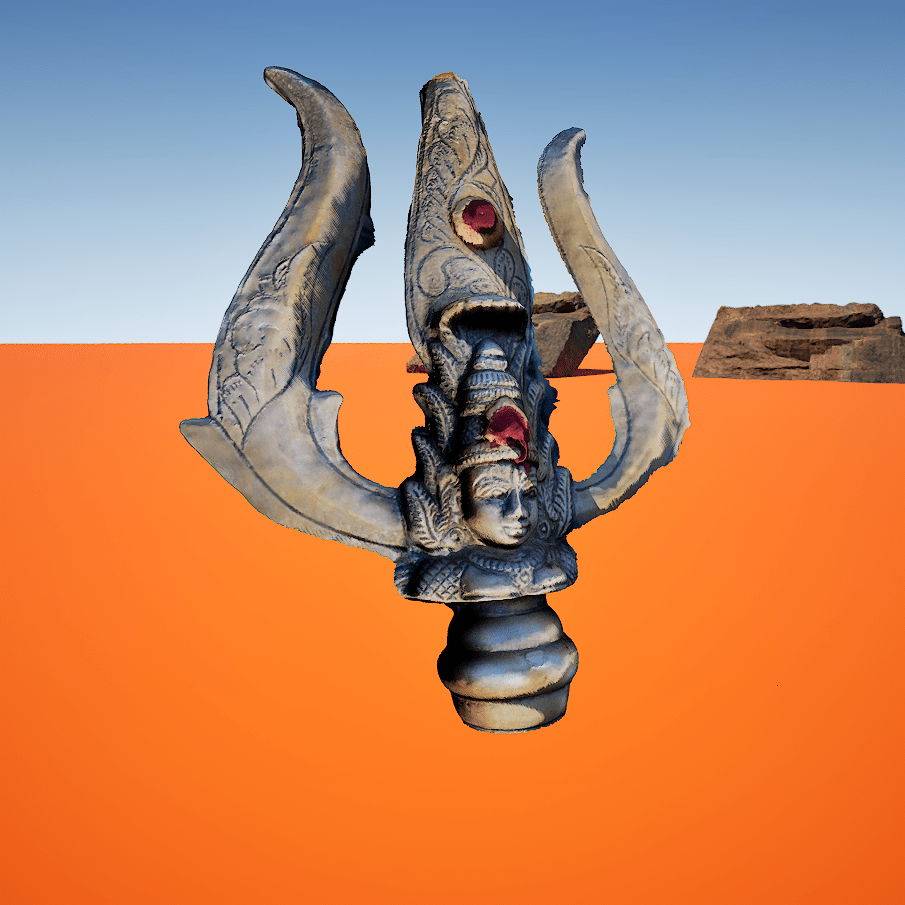 Trishul/ Trident with davi face 3D Model - One sided - Indian god's Equipment.